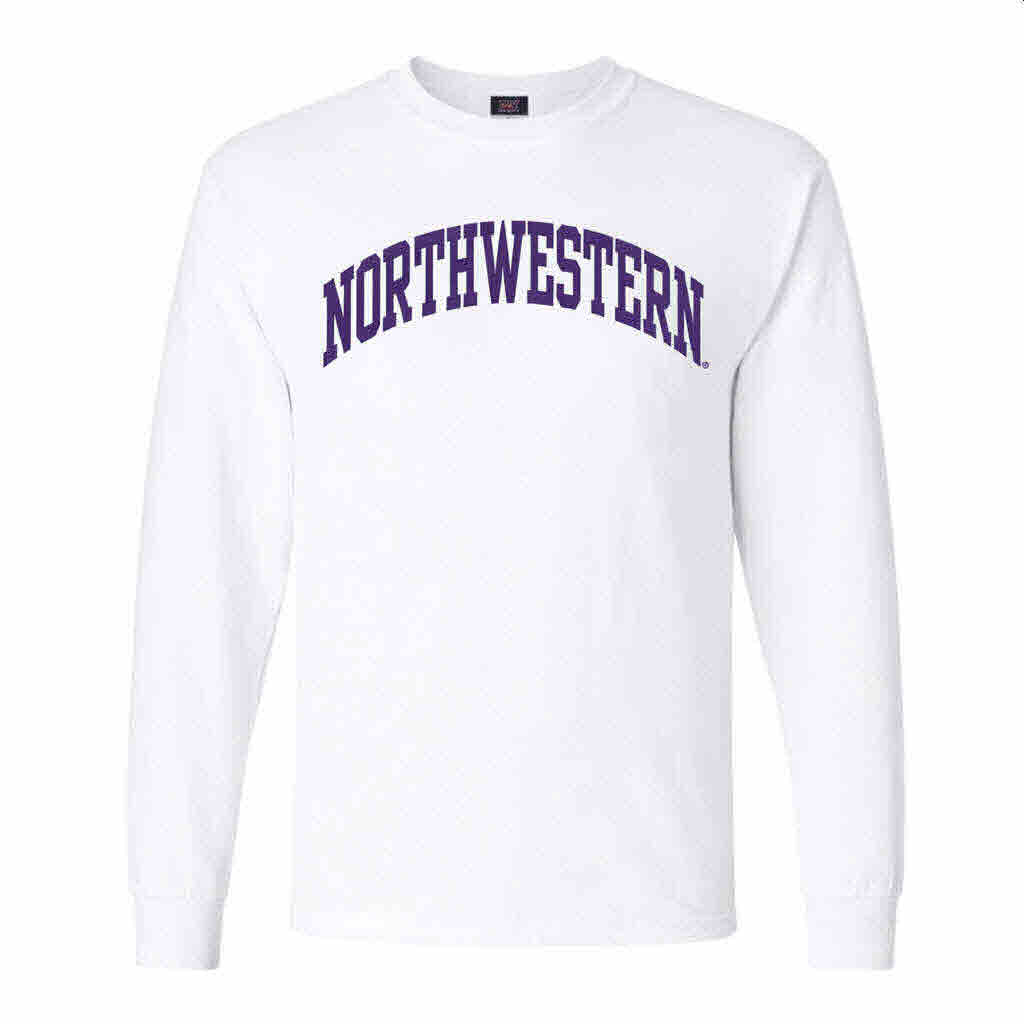 Northwestern University Wildcats Men’s MV White Classic Long Sleeve Tee with One Color Arch Design