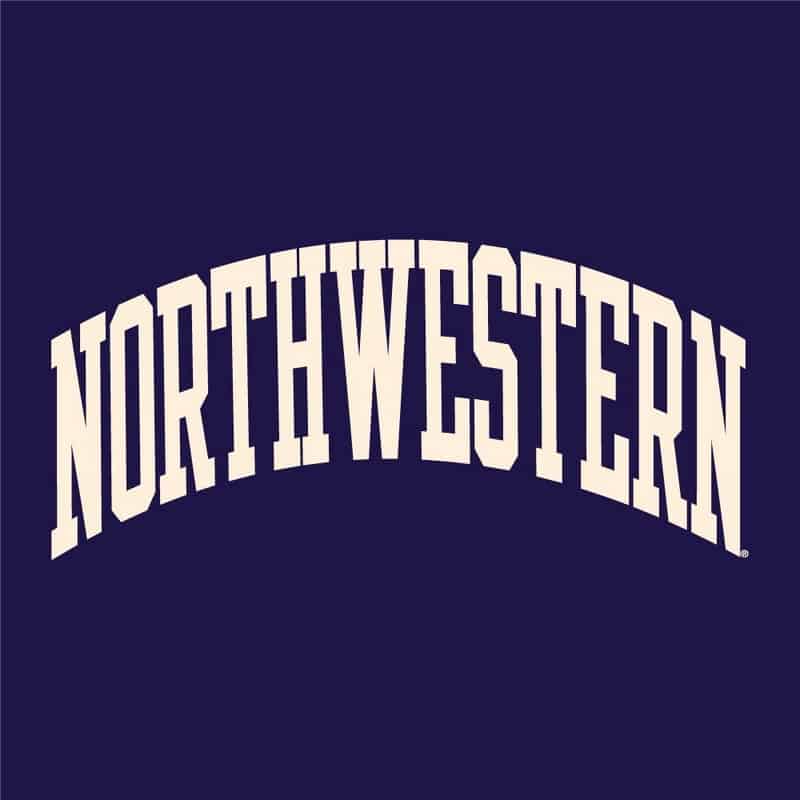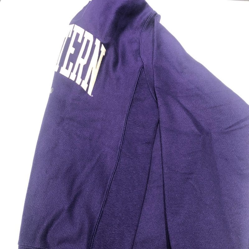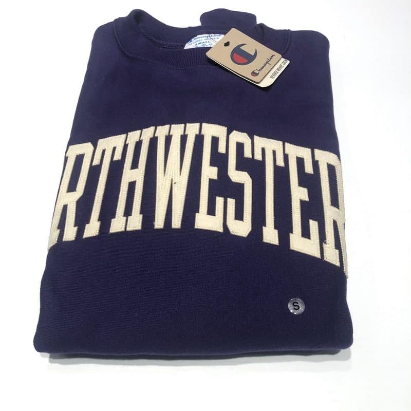 Northwestern University Wildcats Men’s Purple Champion Super Heavy Reverse Weave Crewneck Sweatshirt with Antique Creamy White Arched Northwestern Wool Sewn Appliqué Design