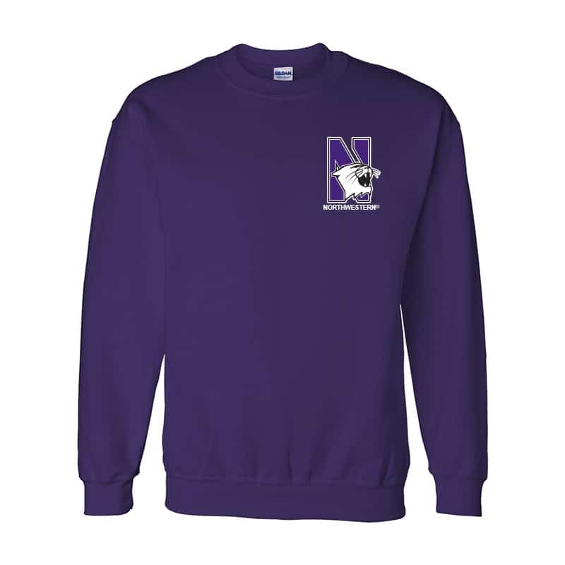 Northwestern University Wildcats Men’s Purple Crewneck Sweatshirt with Left Chest Embroidered N-Cat & Northwestern Design
