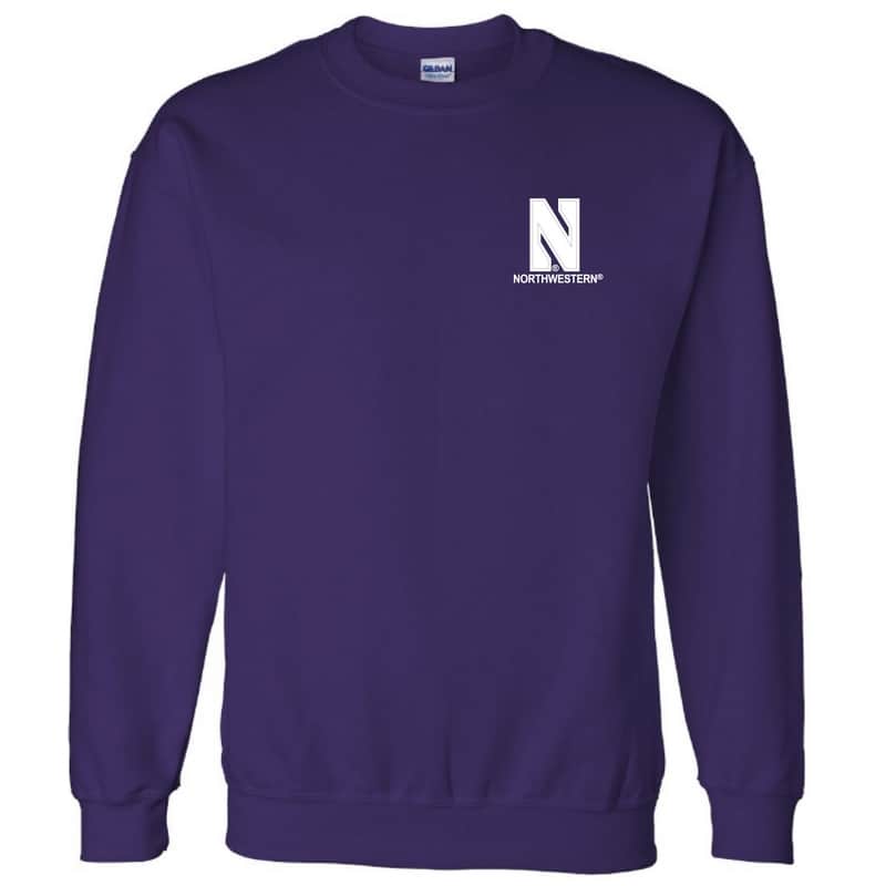 Northwestern University Wildcats Men’s Purple Crewneck Sweatshirt with Left Chest Embroidered Stylized N & Northwestern Design