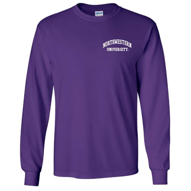 Northwestern University Wildcats Men’s Purple Long Sleeve Tee Shirt with Left Chest Embroidered Northwestern University Design