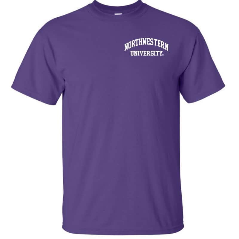 Northwestern University Wildcats Men’s Purple Short Sleeve Tee Shirt with Left Chest Embroidered Northwestern University Design