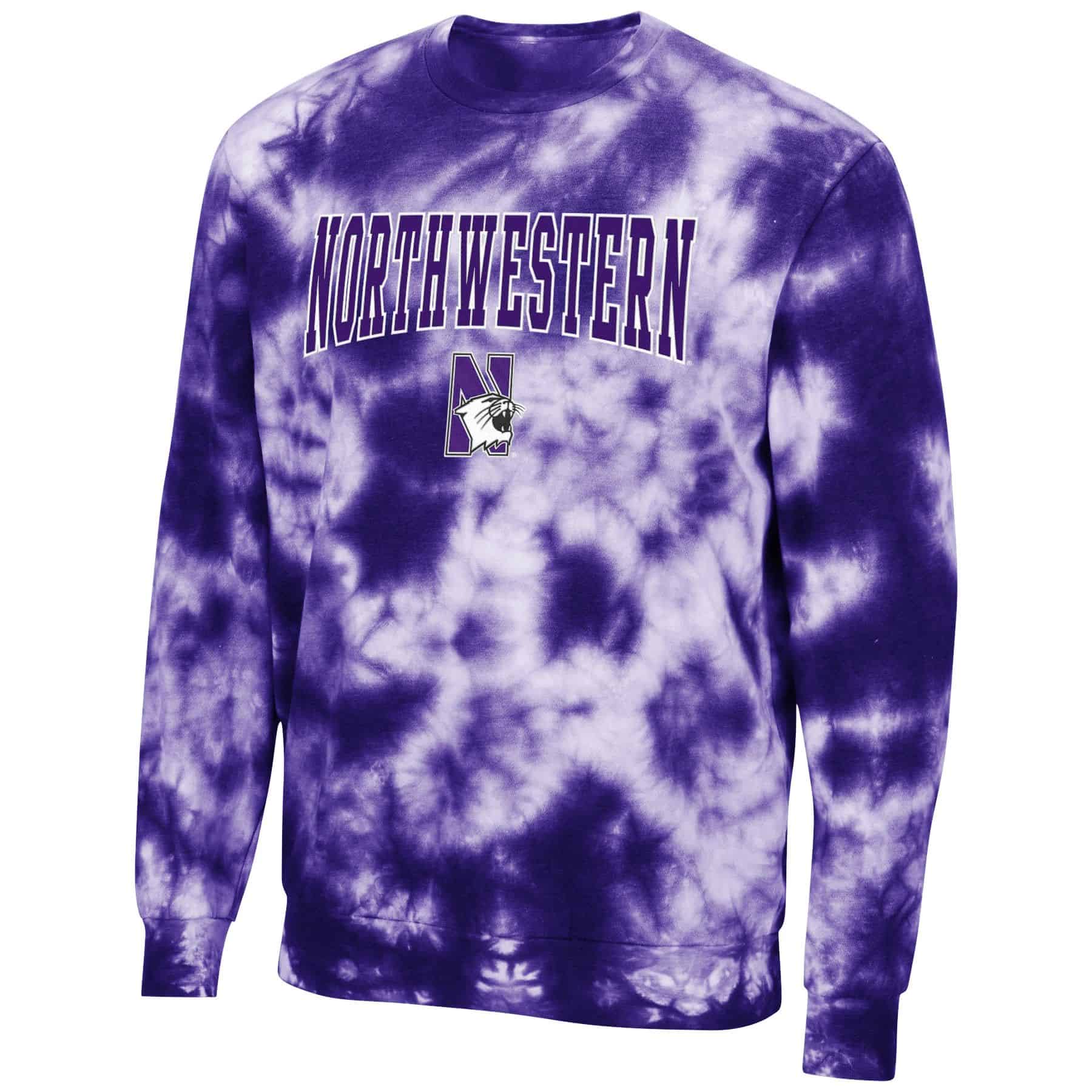 Northwestern University Wildcats Men’s Purple Tie Dye Crewneck Sweatshirt with Applique Sewn Design