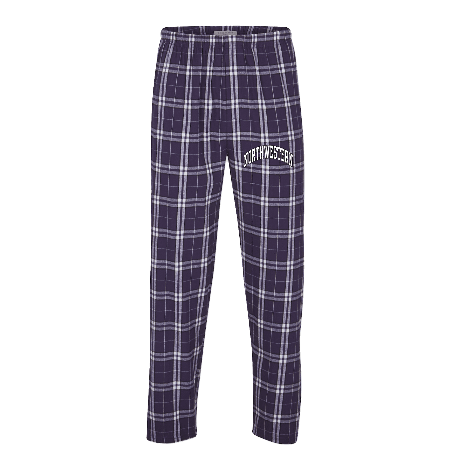 Northwestern University Wildcats Men’s Purple White Plaid Harley Flannel Pants with Small Arched Northwestern Design