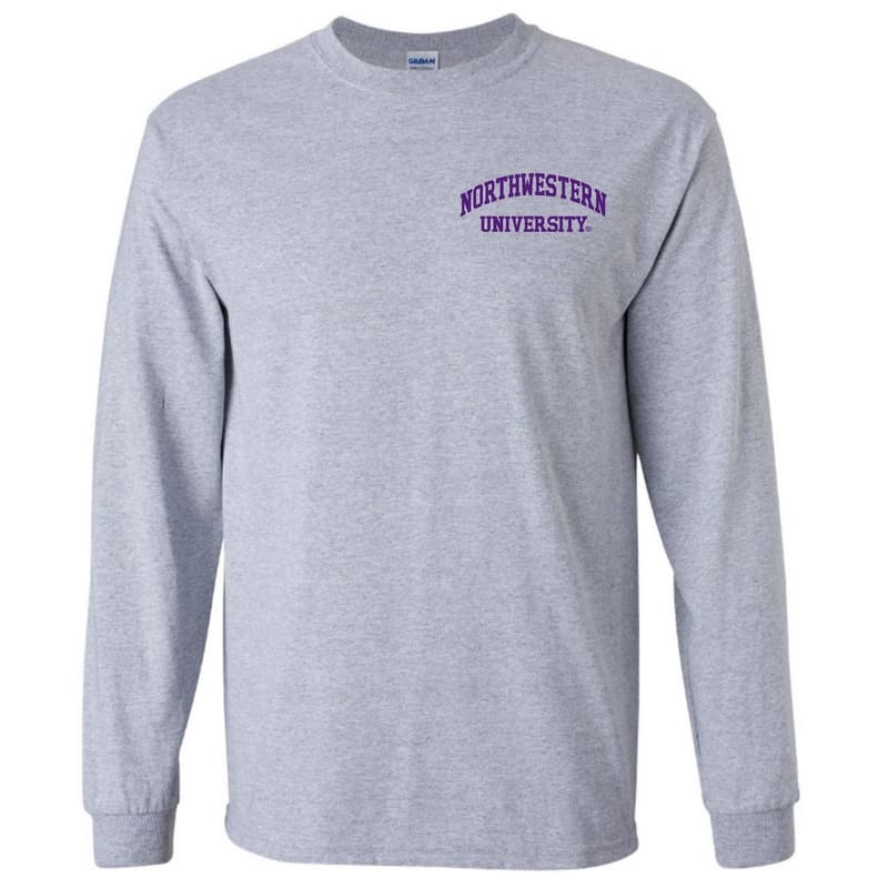 Northwestern University Wildcats Men’s Sport Grey Long Sleeve Tee Shirt with Left Chest Embroidered Northwestern University Design