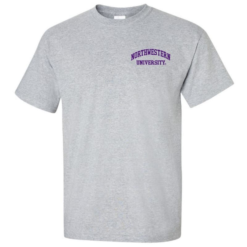 Northwestern University Wildcats Men’s Sport Grey Short Sleeve Tee Shirt with Left Chest Embroidered Northwestern University Design