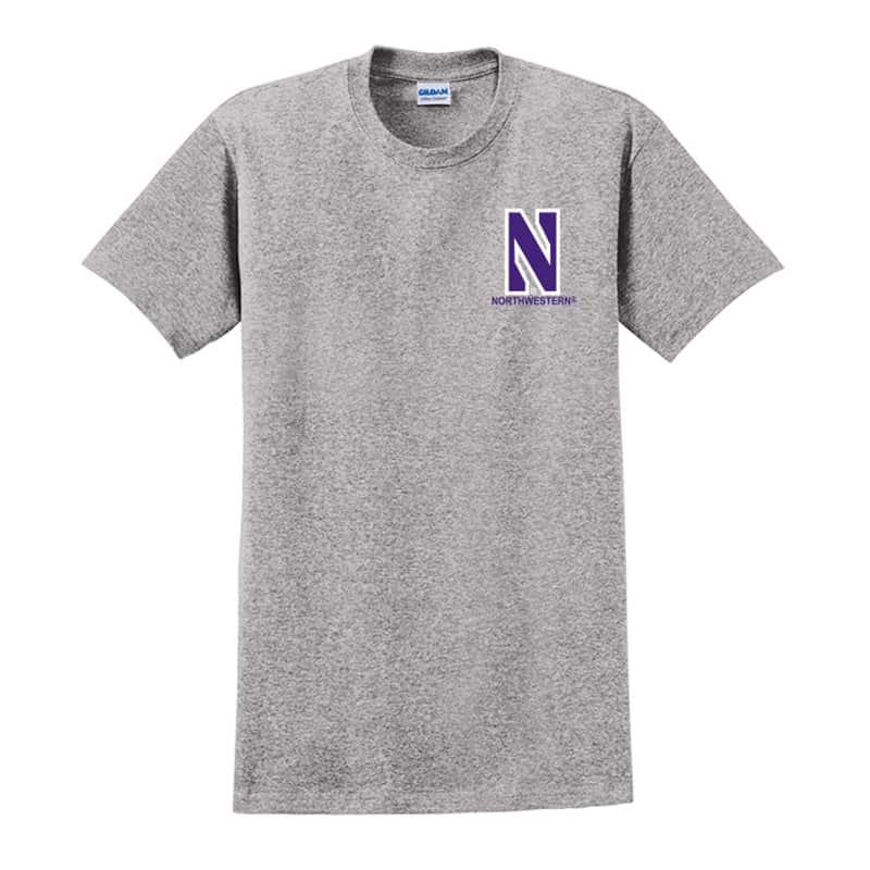 Men’s Sport Grey Short Sleeve Tee Shirt with Left Chest Embroidered Stylized N & Northwestern Design
