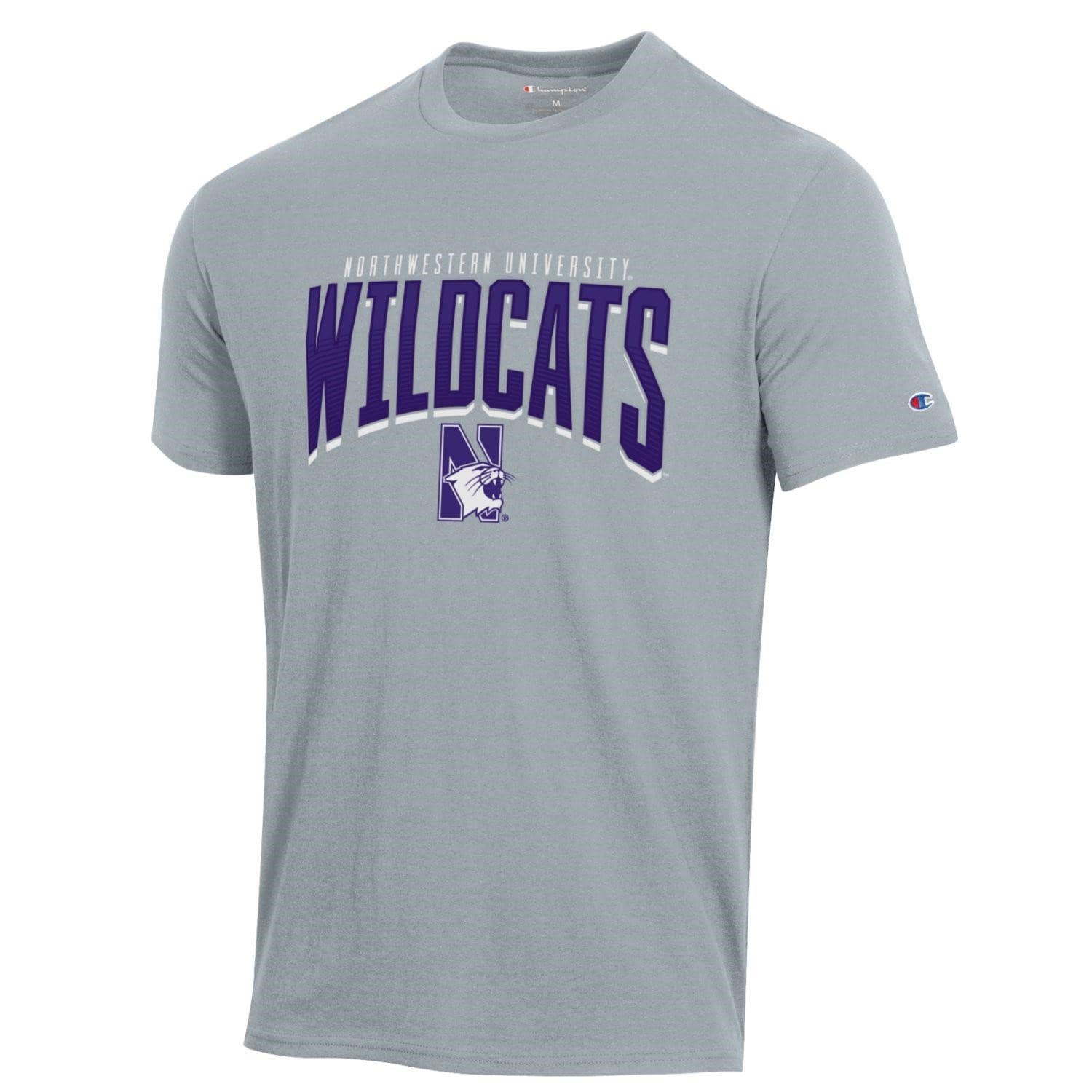 Northwestern University Wildcats Men’s Steel Grey Short Sleeve Tee Shirt with HD Northwestern Wildcats Over N-cat Design