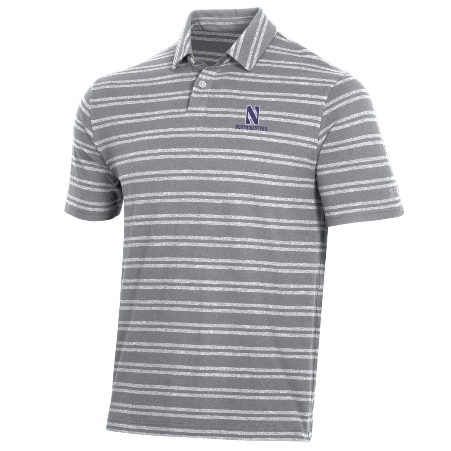 Northwestern University Wildcats Men’s Under Armour Charged Cotton Stripe Polo in Grey