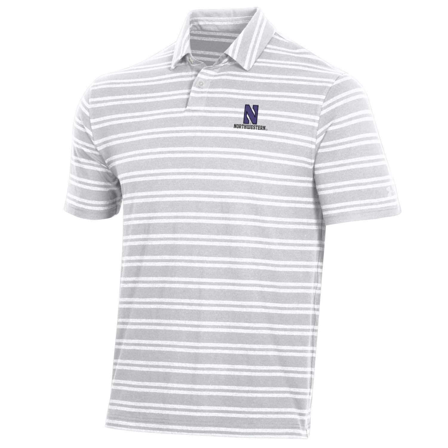 Northwestern University Wildcats Men’s Under Armour Charged Cotton Stripe Polo in White