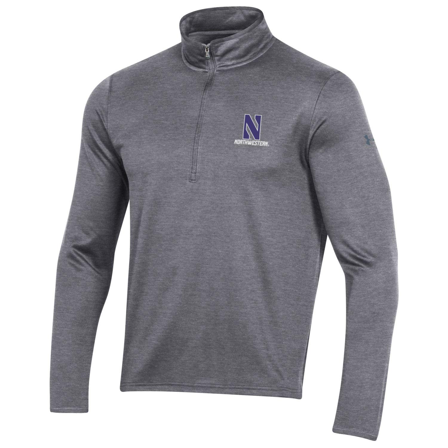 Northwestern University Wildcats Men’s Under Armour Fleece 1/2 Zip with Stylized N Design in Carbon Heather Color