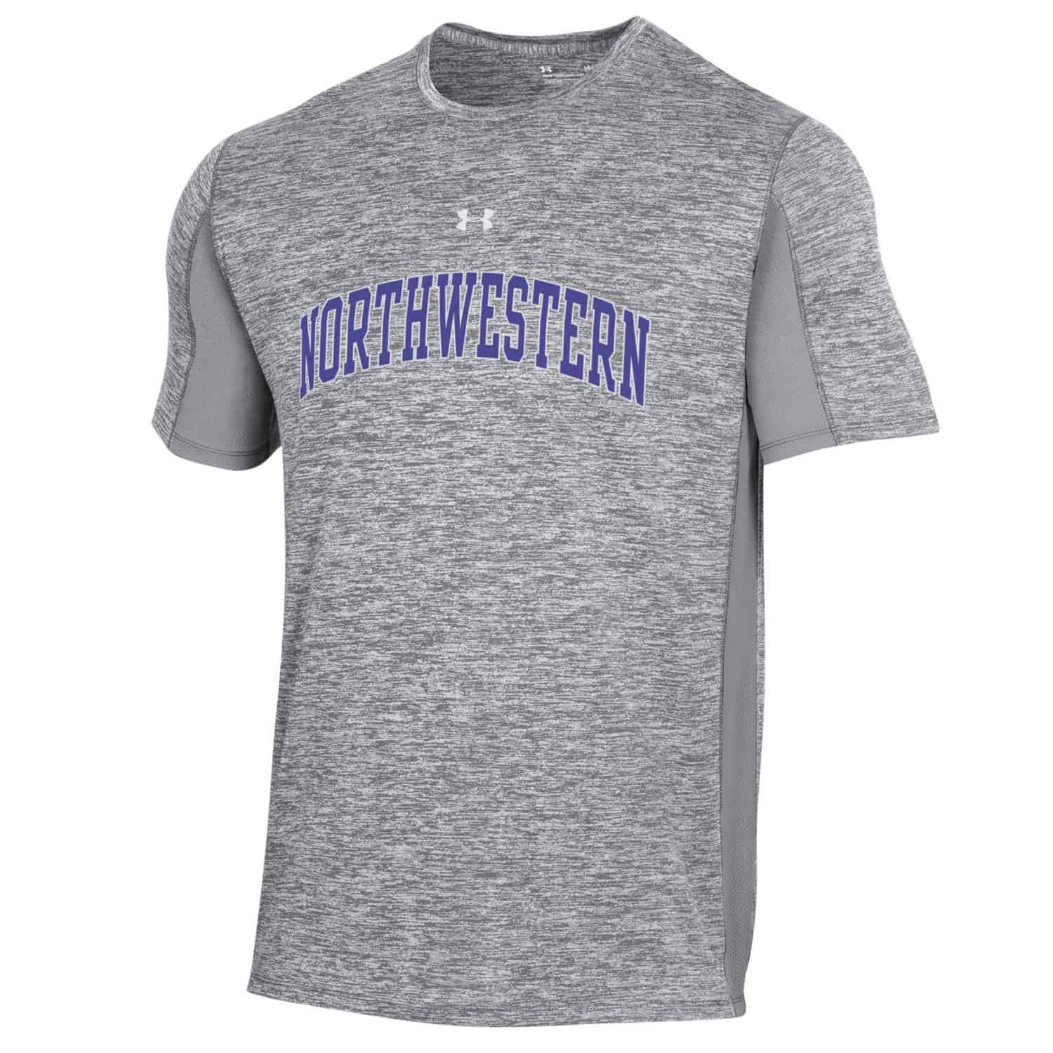 Northwestern University Wildcats Men’s Under Armour Mod Grey Twist Tech Performance Mesh Short Sleeve Tee with Arched Northwestern Design