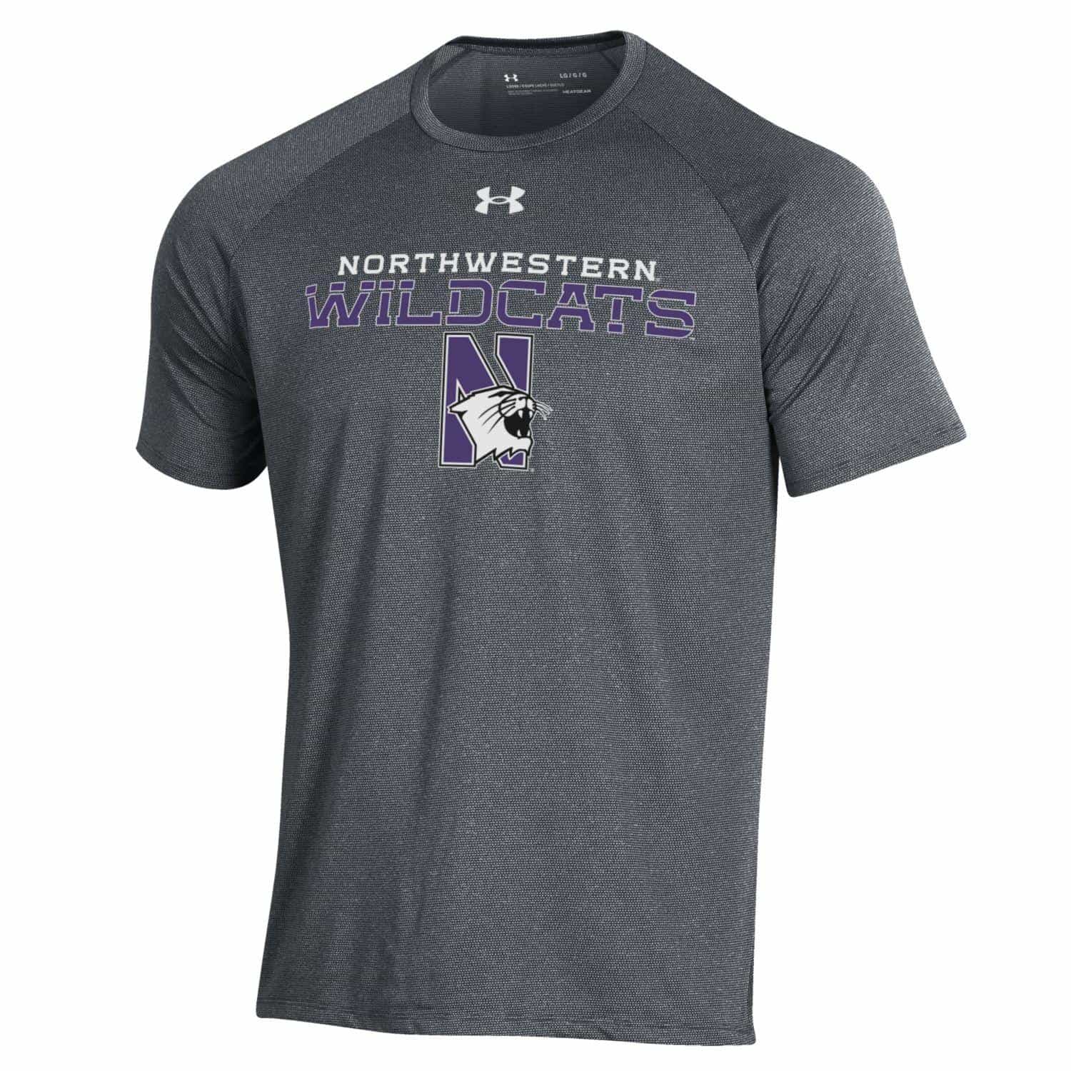 Northwestern University Wildcats Men’s Under Armour Pitch Grey Tech Novelty Short Sleeve Tee with N-Cat Design