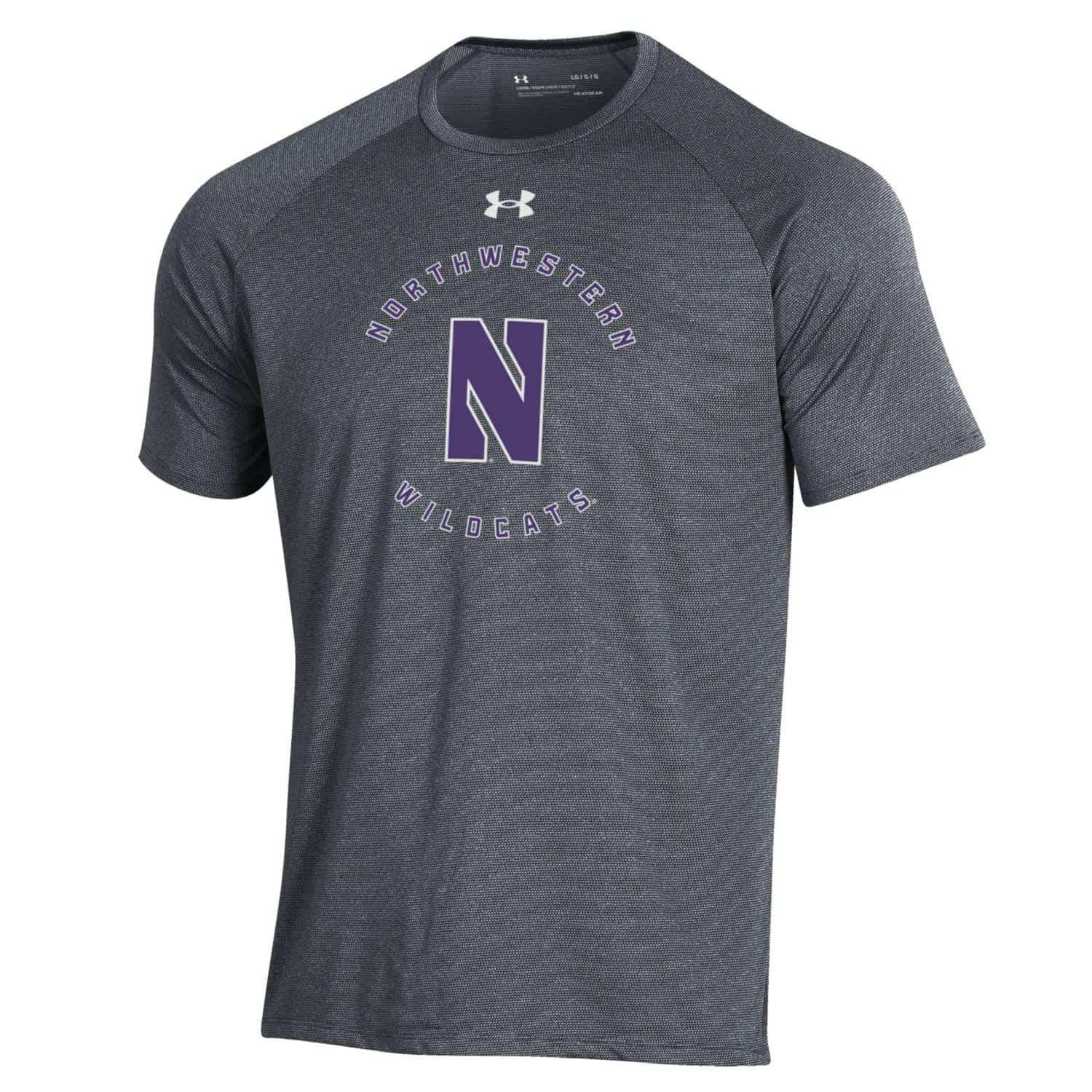 Northwestern University Wildcats Men’s Under Armour Pitch Grey Tech Novelty Short Sleeve Tee with Stylized N Circle Design