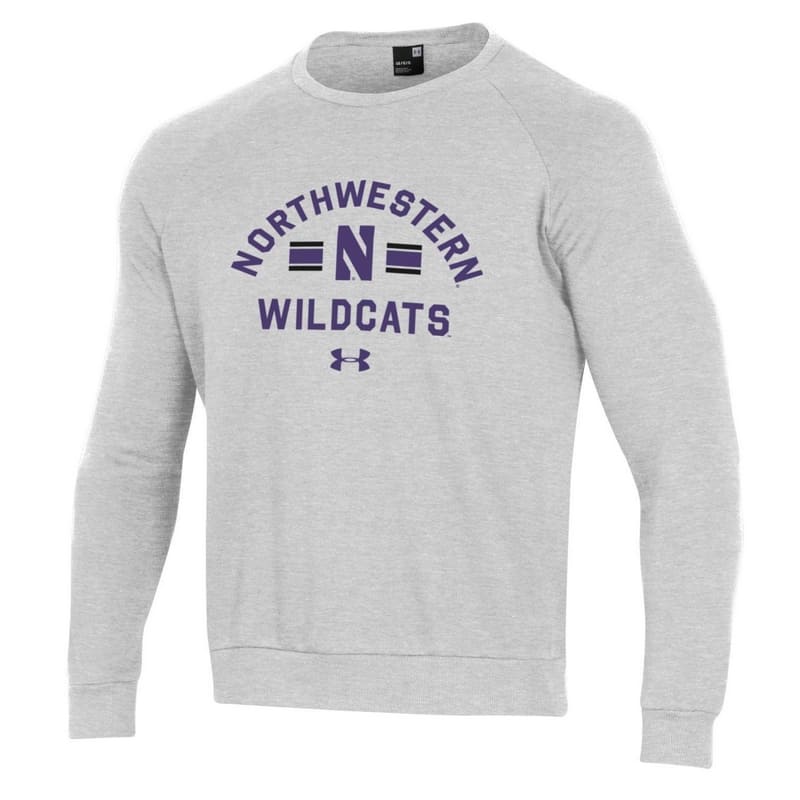 Northwestern University Wildcats Men’s Under Armour Silver Heather All Day Fleece Crew With Stylized N Design