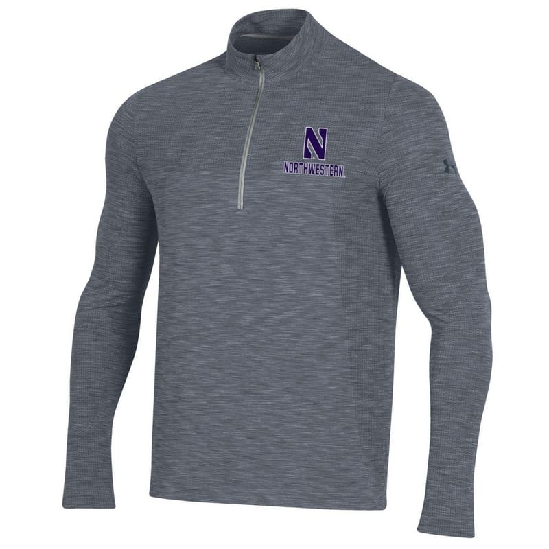 Northwestern University Wildcats Men’s Under Armour Steel Novelty Vanish Seamless 1/4 Zip With Stylized N Design