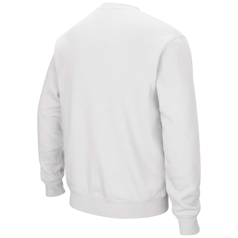 Northwestern University Wildcats Men’s White Colosseum Crewneck Sweatshirt With Sewn Arched Northwestern Over N-Cat Design