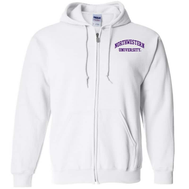 Men’s White Full-Zip Hooded Sweatshirt with Left Chest Embroidered Northwestern University Design