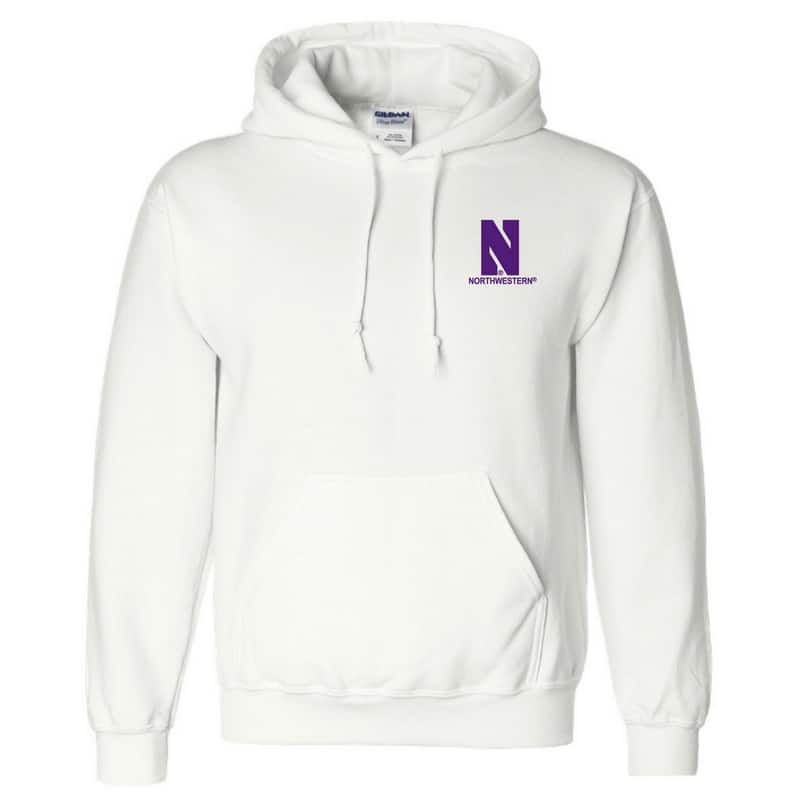 Northwestern University Wildcats Men’s White Hooded Sweatshirt with Left Chest Embroidered Stylized N & Northwestern Design