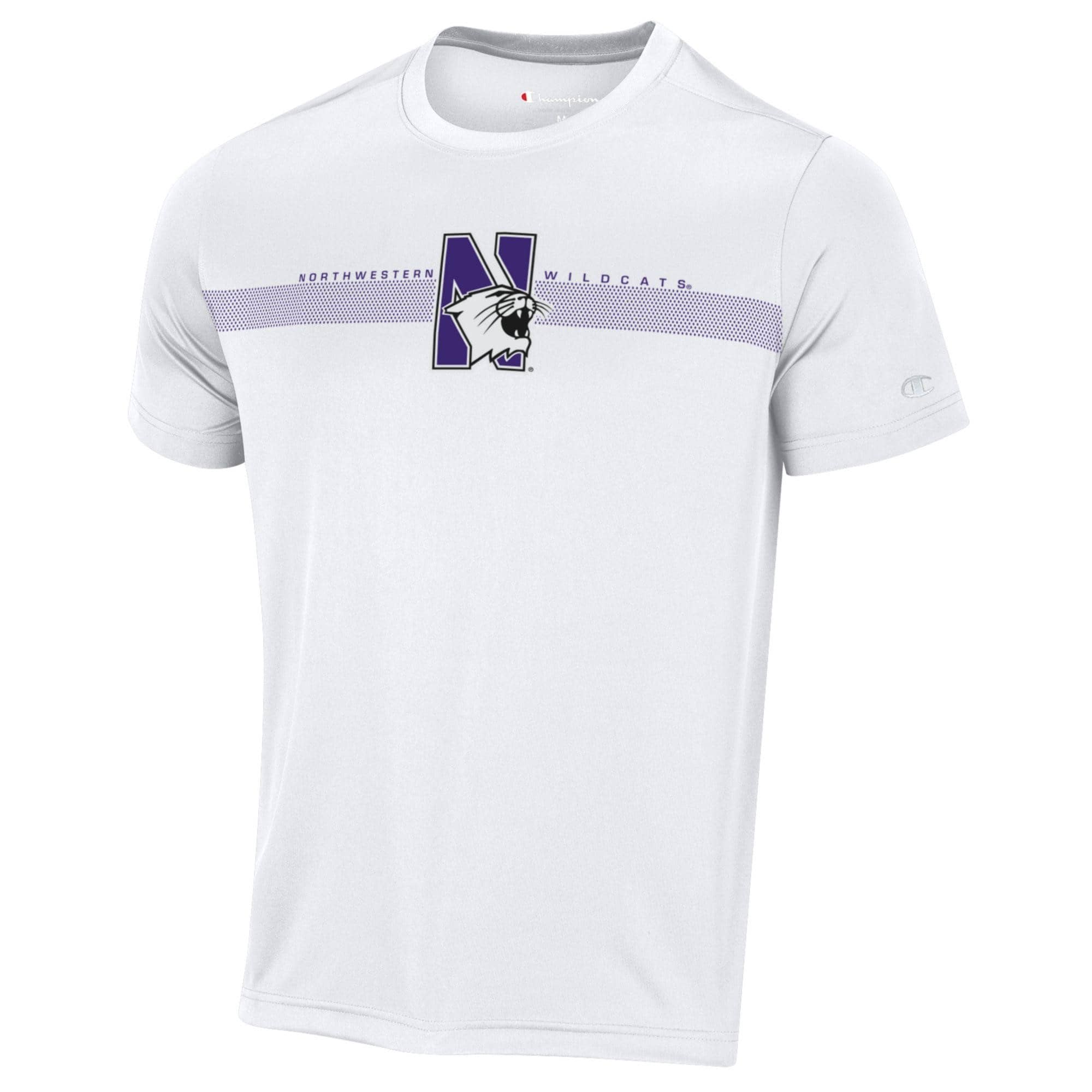 Northwestern University Wildcats Men’s White Short Sleeve Impact Tee Shirt with Seam to Seam Design