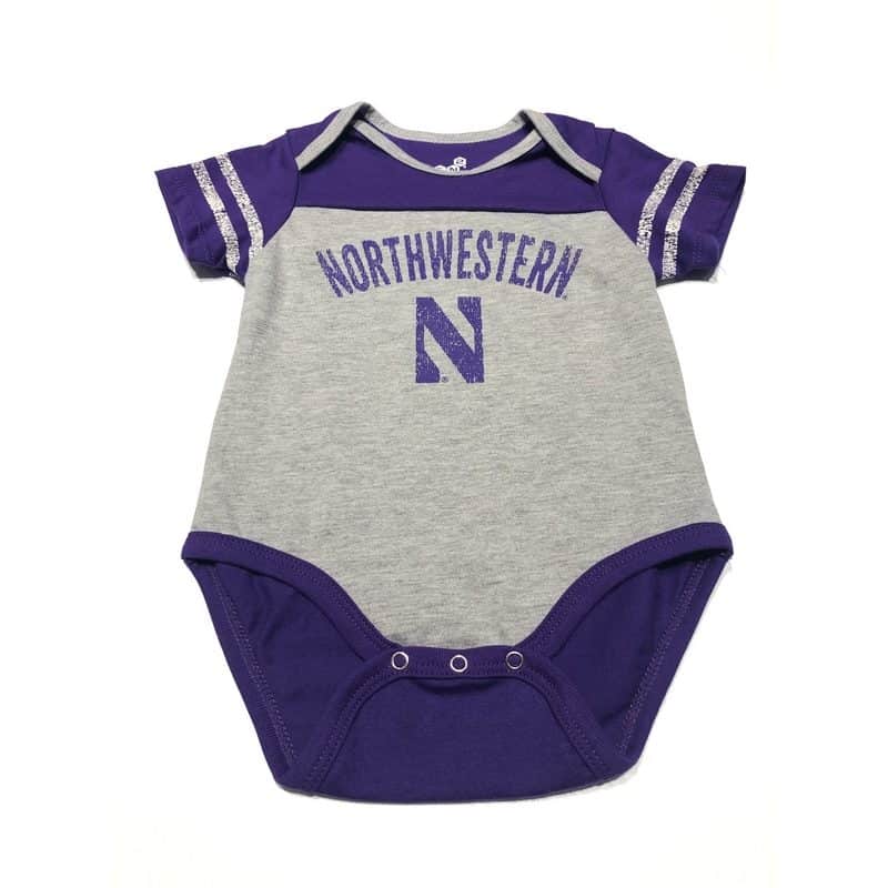 Northwestern University Wildcats Onesie with Purple Shoulders and Back & Arch Northwestern Over N Design quantity