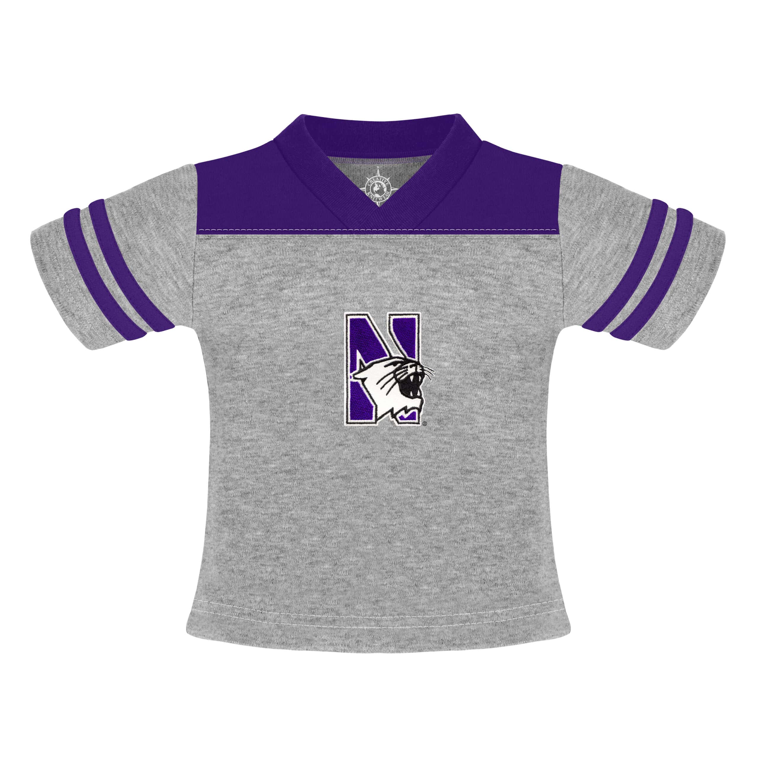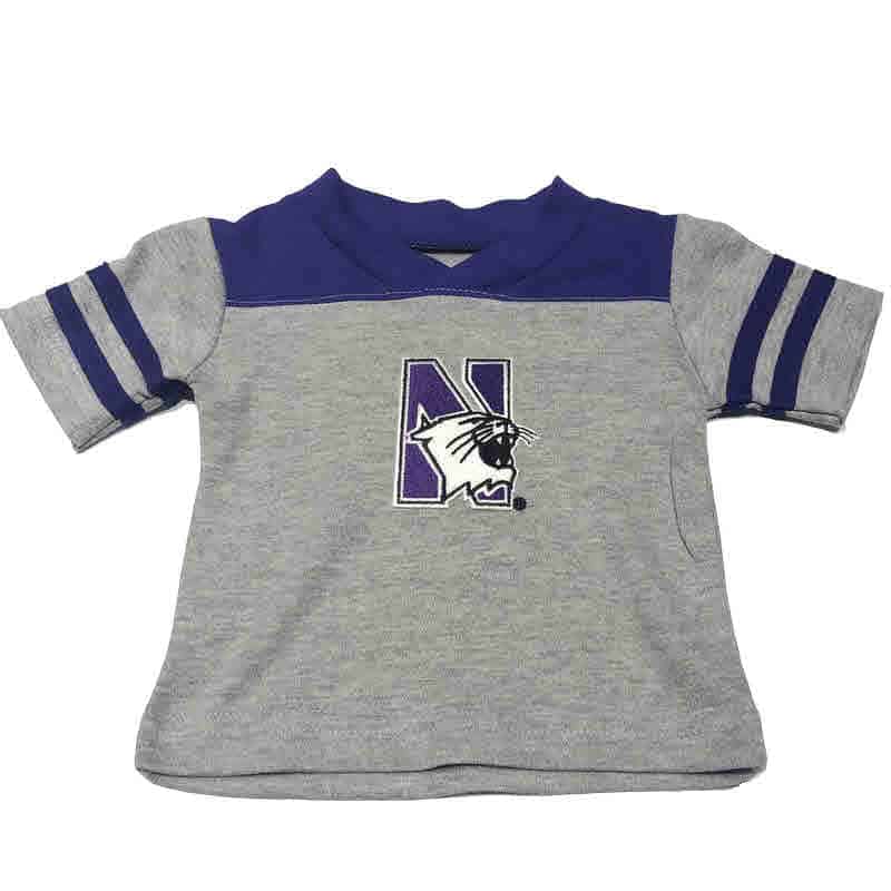 Northwestern University Wildcats Purple/Grey Football T-Shirt With Embroidered N-Cat Design