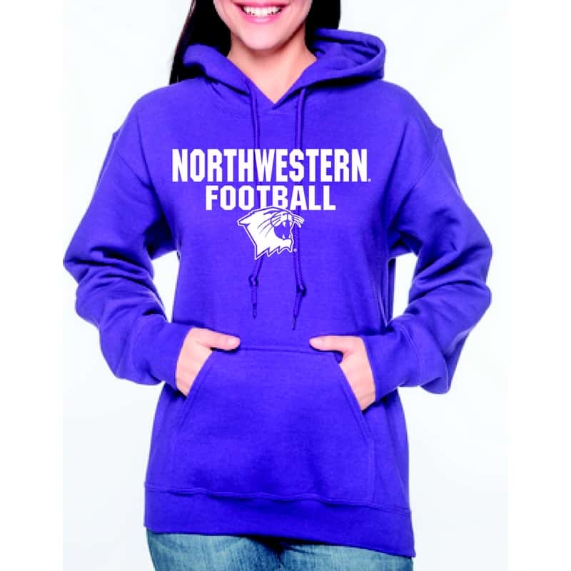 Northwestern University Wildcats Purple Hooded Sweatshirt with Northwestern Football Wildcat Design