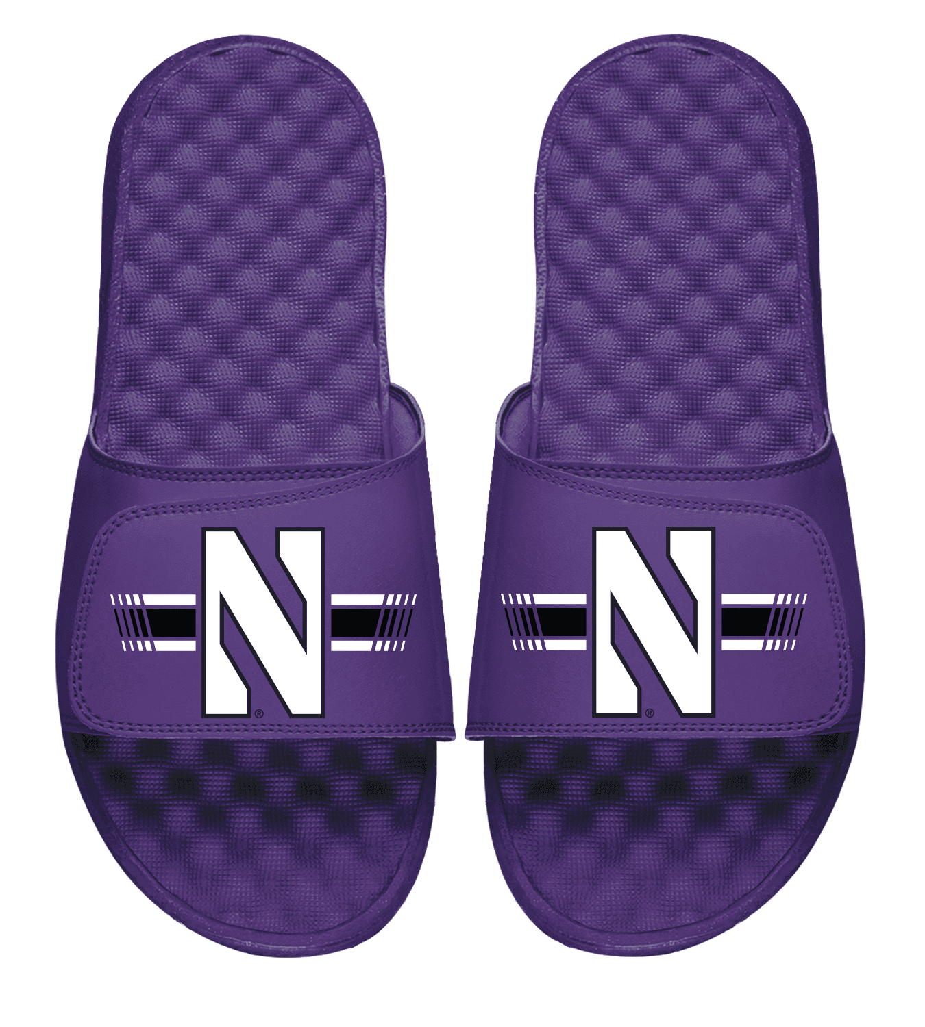 Northwestern University Wildcats Purple ISlide Flip Flops with Stylized N and the Stripes Design