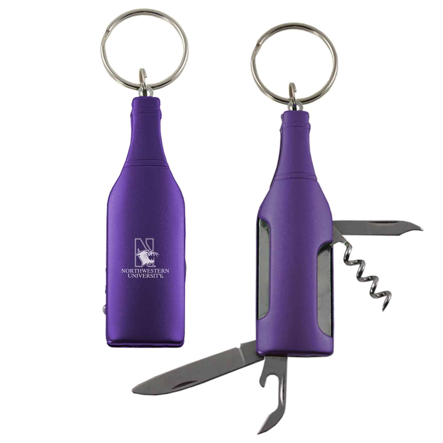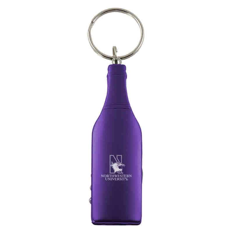 Northwestern University Wildcats Purple Laser Engraved Bottle Shaped Multi-Tool Wine/Bottle Opener Keychain