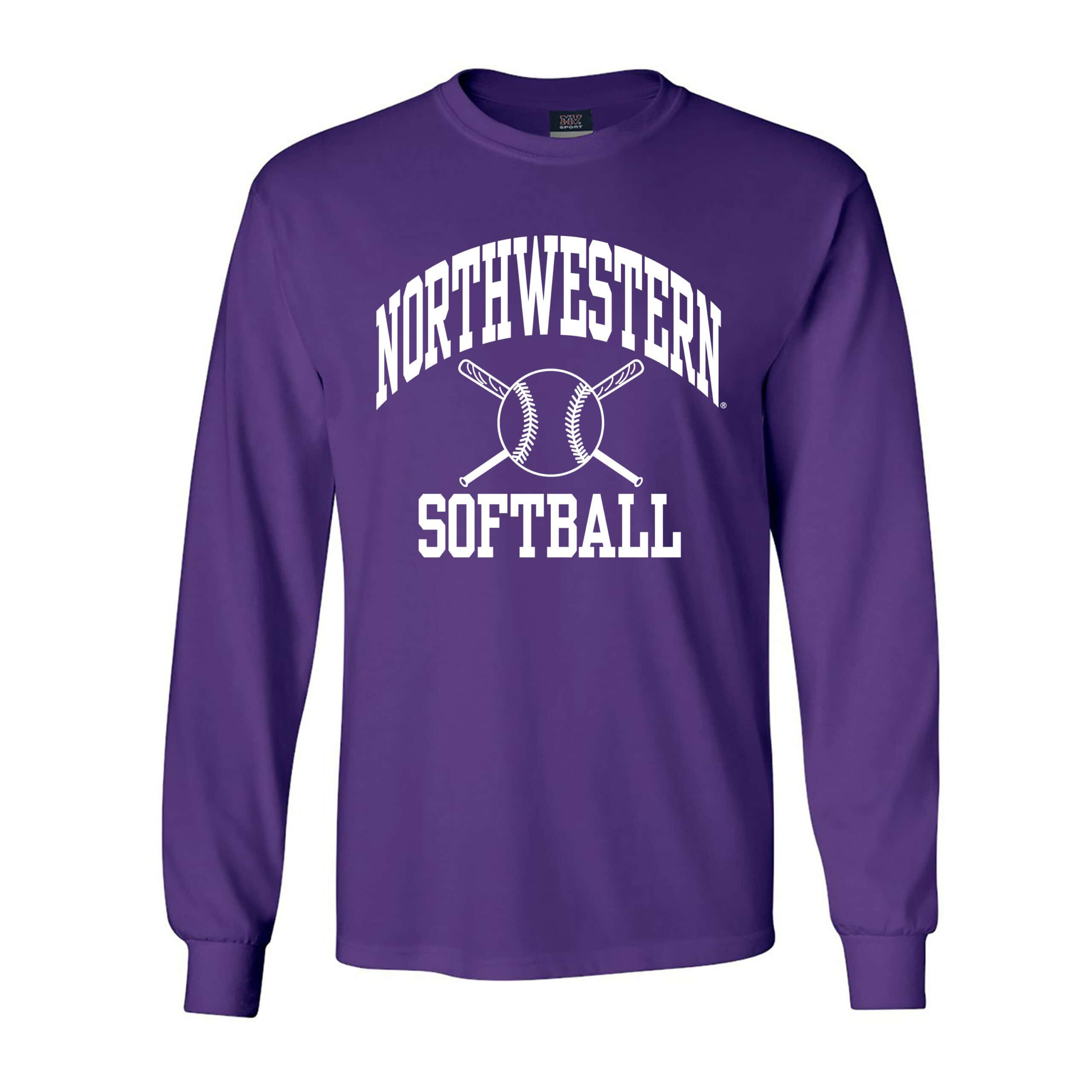 Northwestern University Wildcats Purple Long Sleeve Tee Shirt with Softball Design