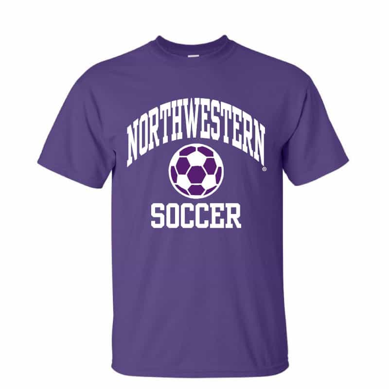 Northwestern University Wildcats Purple Short Sleeve Tee Shirt with Soccer Design