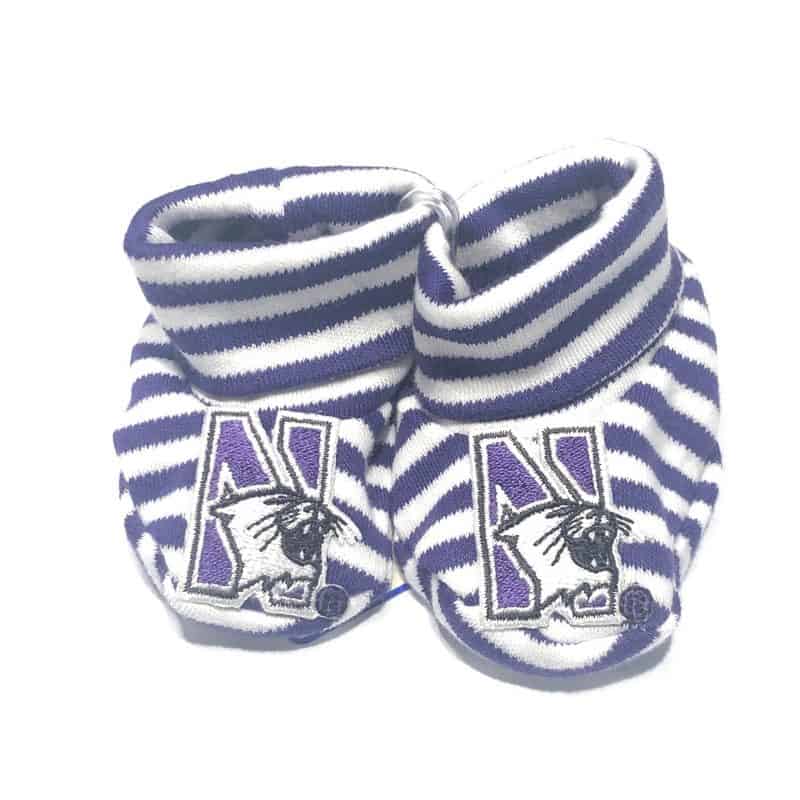 Northwestern University Wildcats Purple/White Stripped Newborn Booties With N-Cat Design quantity