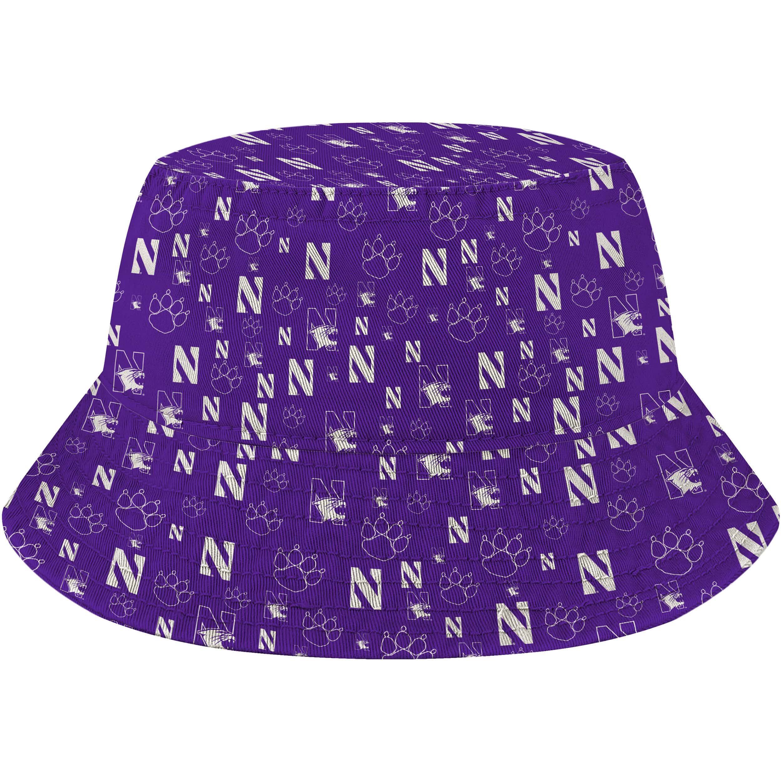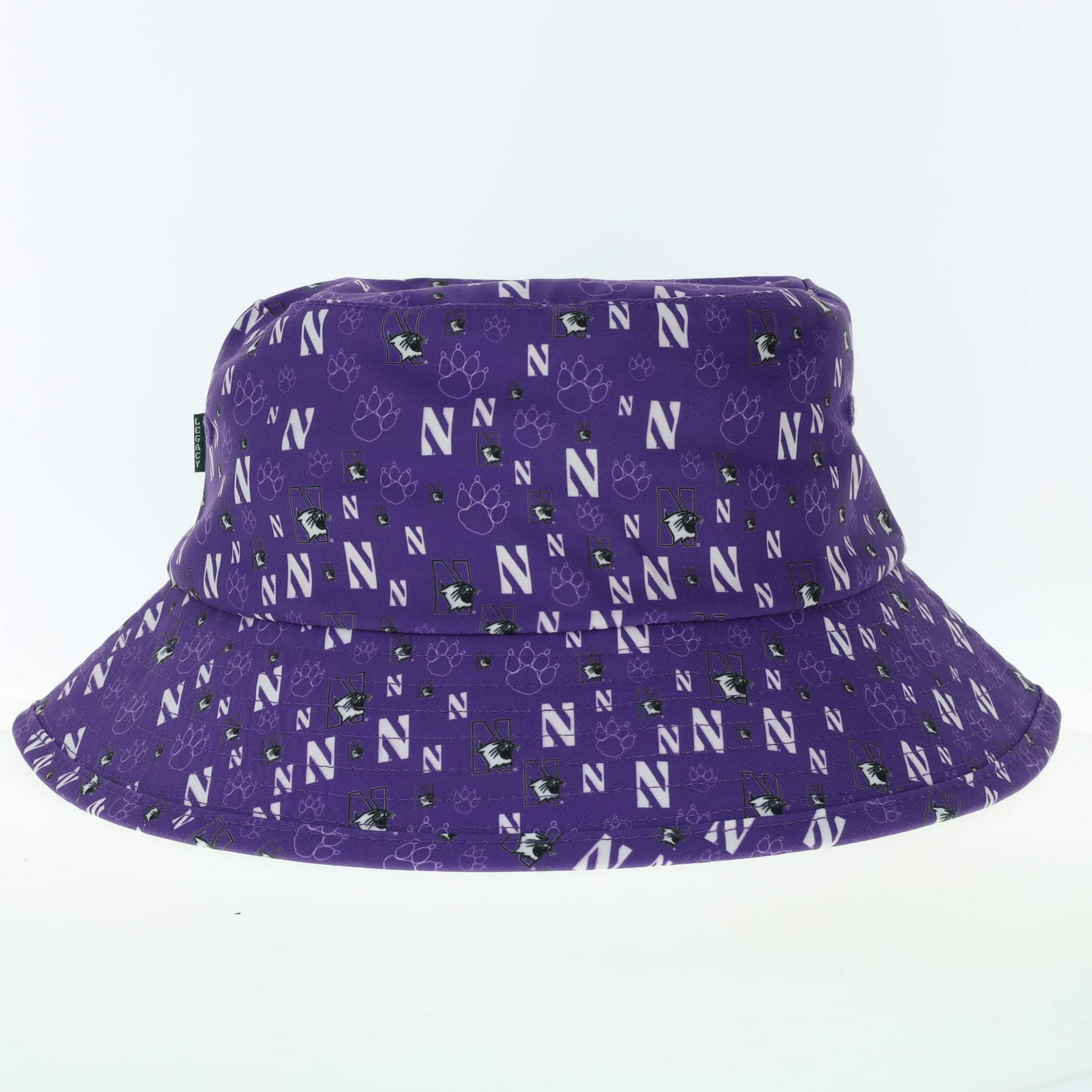 Northwestern University Wildcats Relaxed Purple Floppy/Bucket Hat with All Over Mixed Logos Print Design