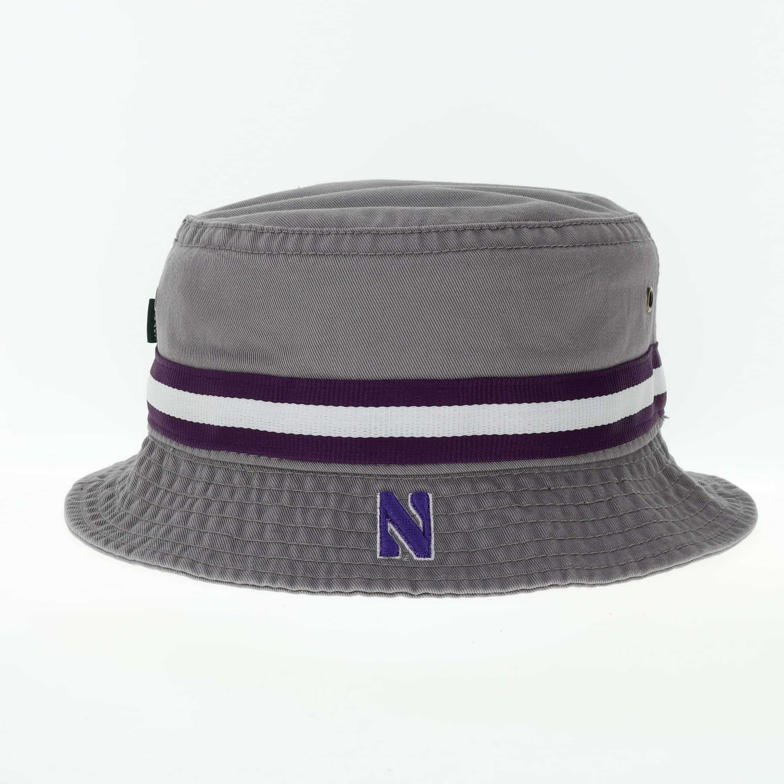Northwestern University Wildcats Relaxed Twill Gray Floppy/Bucket Hat with Contrasting Team Color Band and Stylized N Design