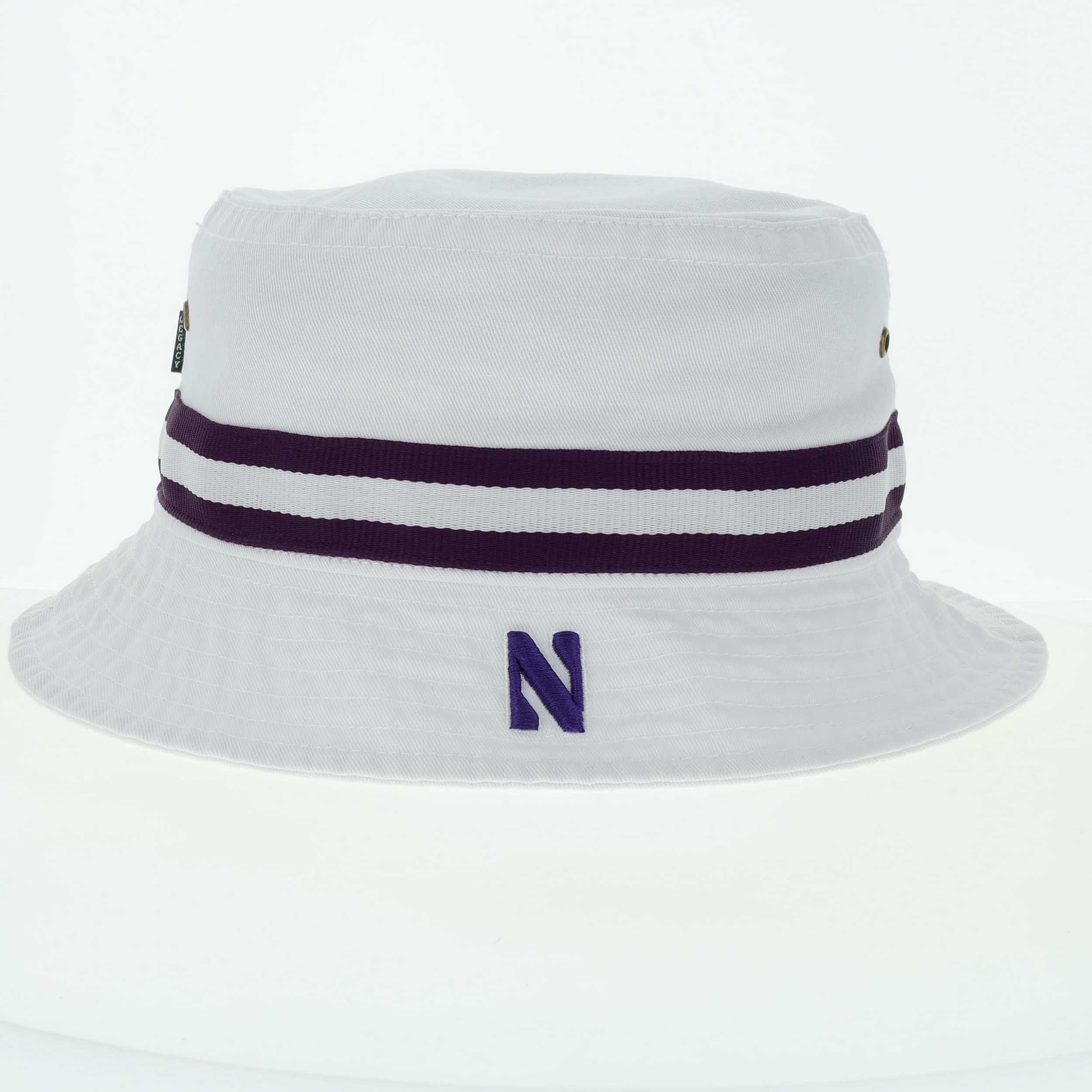 Northwestern University Wildcats Relaxed Twill White Floppy/Bucket Hat with Contrasting Team Color Band and Stylized N Design quantity