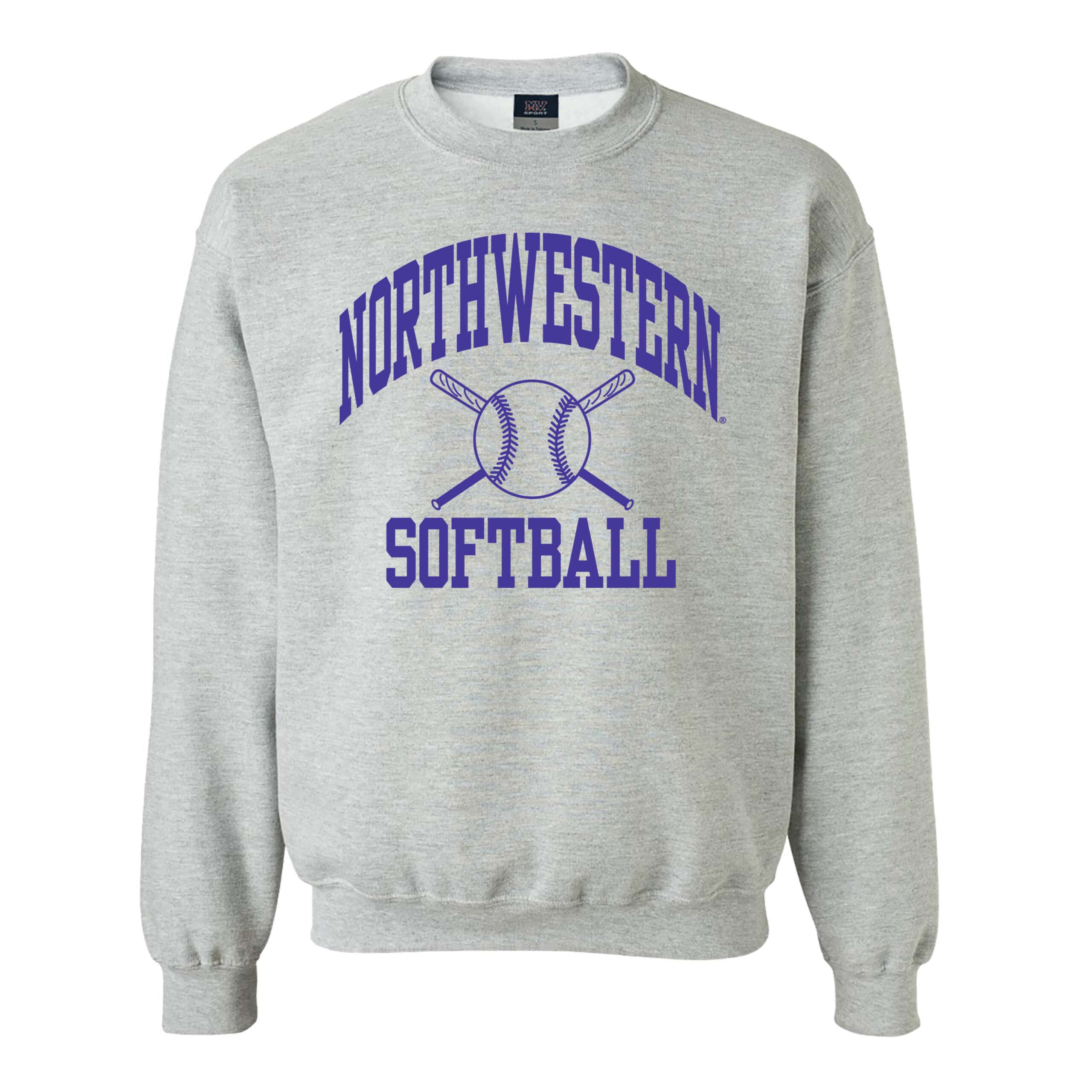 Northwestern University Wildcats Sport Grey Crewneck Sweatshirt with Softball Design