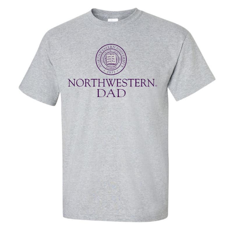 Northwestern University Wildcats Sport Grey Short Sleeve Tee Shirt with Dad Design