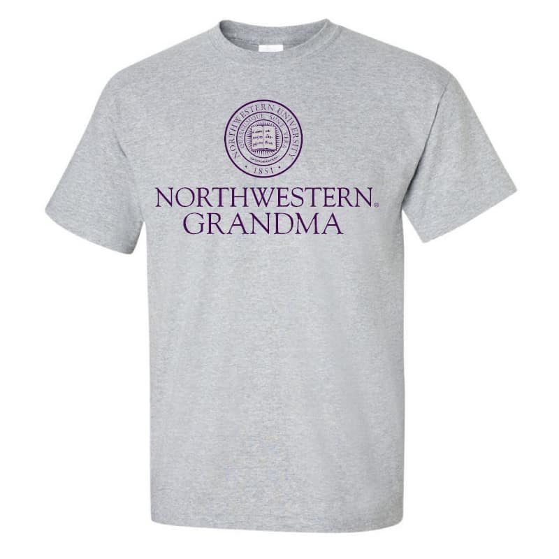 Northwestern University Wildcats Sport Grey Short Sleeve Tee Shirt with Grandma Design
