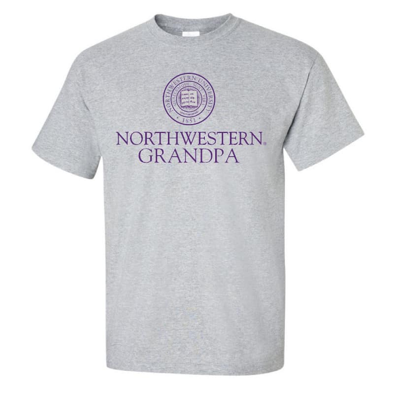 Northwestern University Wildcats Sport Grey Short Sleeve Tee Shirt with Grandpa Design