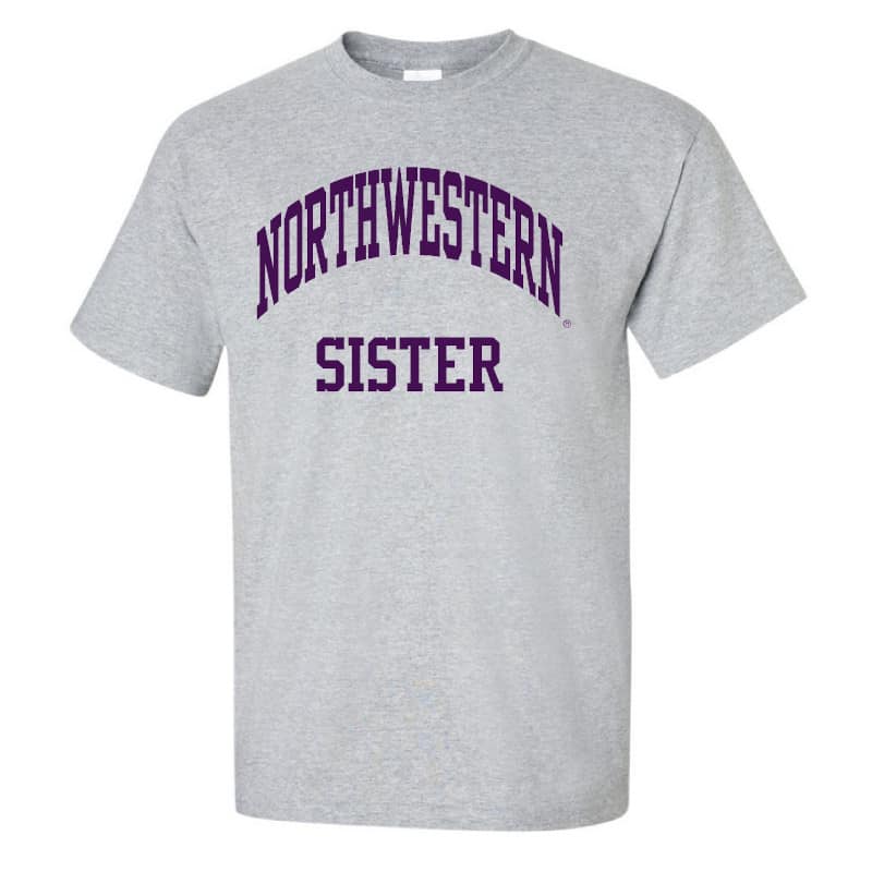 Northwestern University Wildcats Sport Grey Short Sleeve Tee Shirt with Sister Design