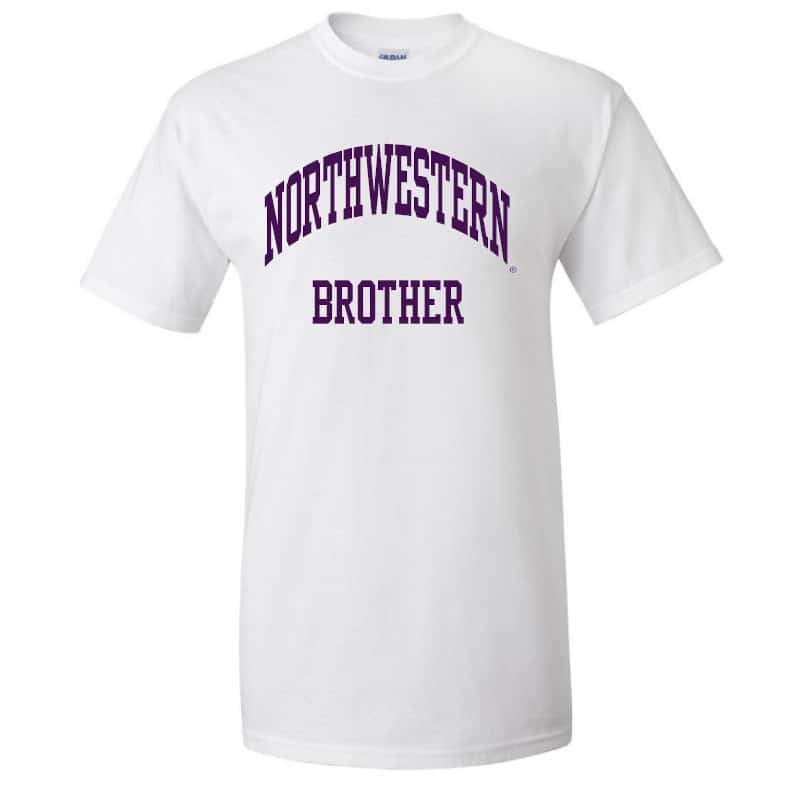 Northwestern University Wildcats Sport White Short Sleeve Tee Shirt with Brother Design