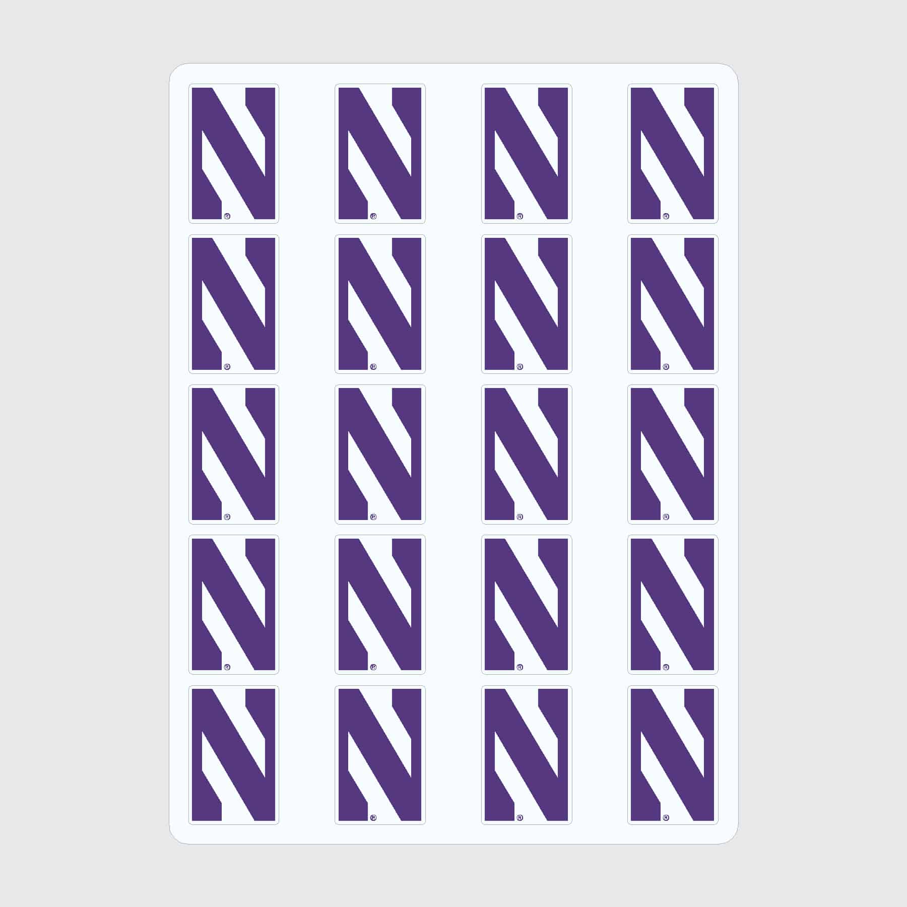 Northwestern University Wildcats Sticker Sheet 1.25″ Stylized N Design Set of 20