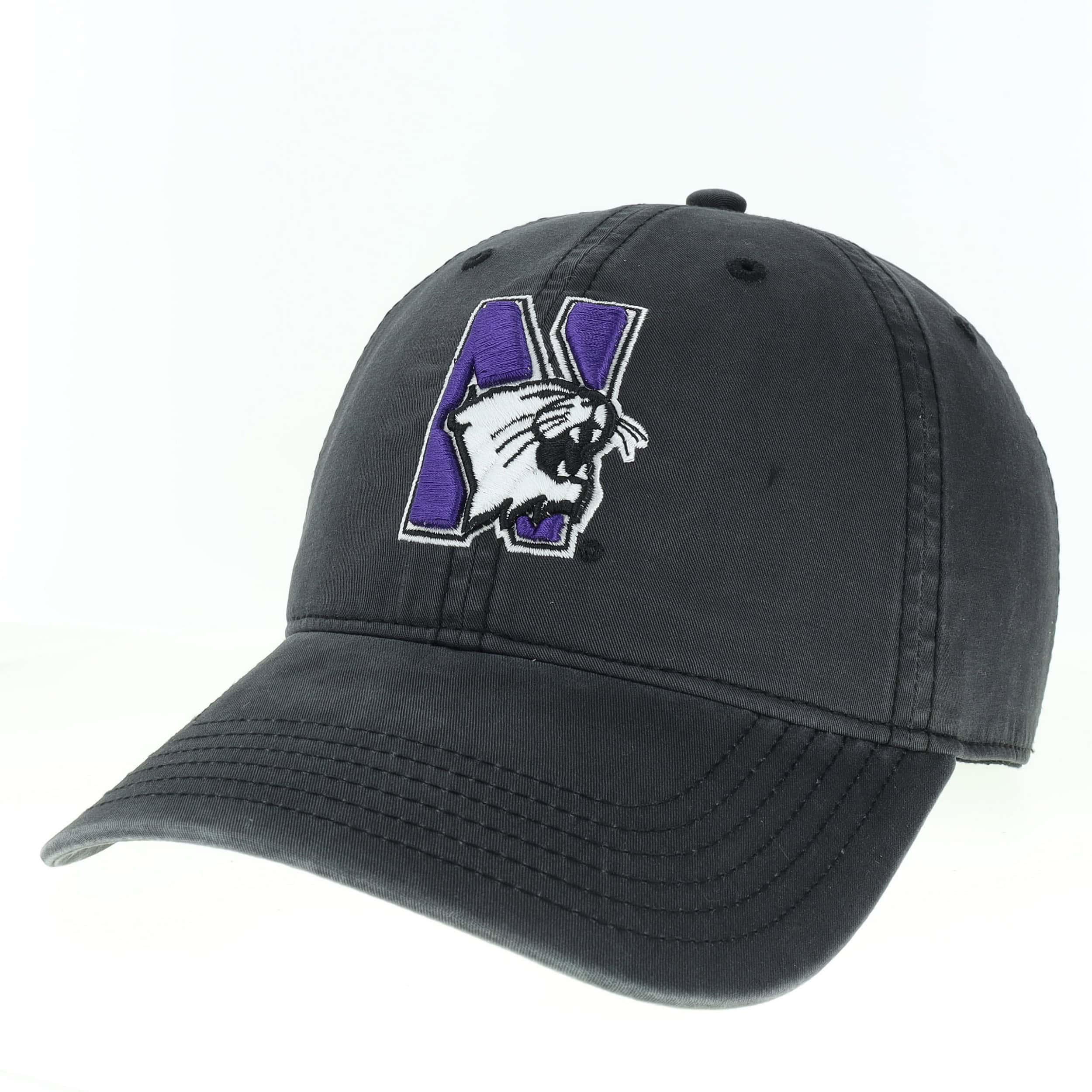 Northwestern University Wildcats Super Light Weight Legacy Unconstructed Adjustable Vintage Washed Black Terra Twill Hat with N-Cat Design