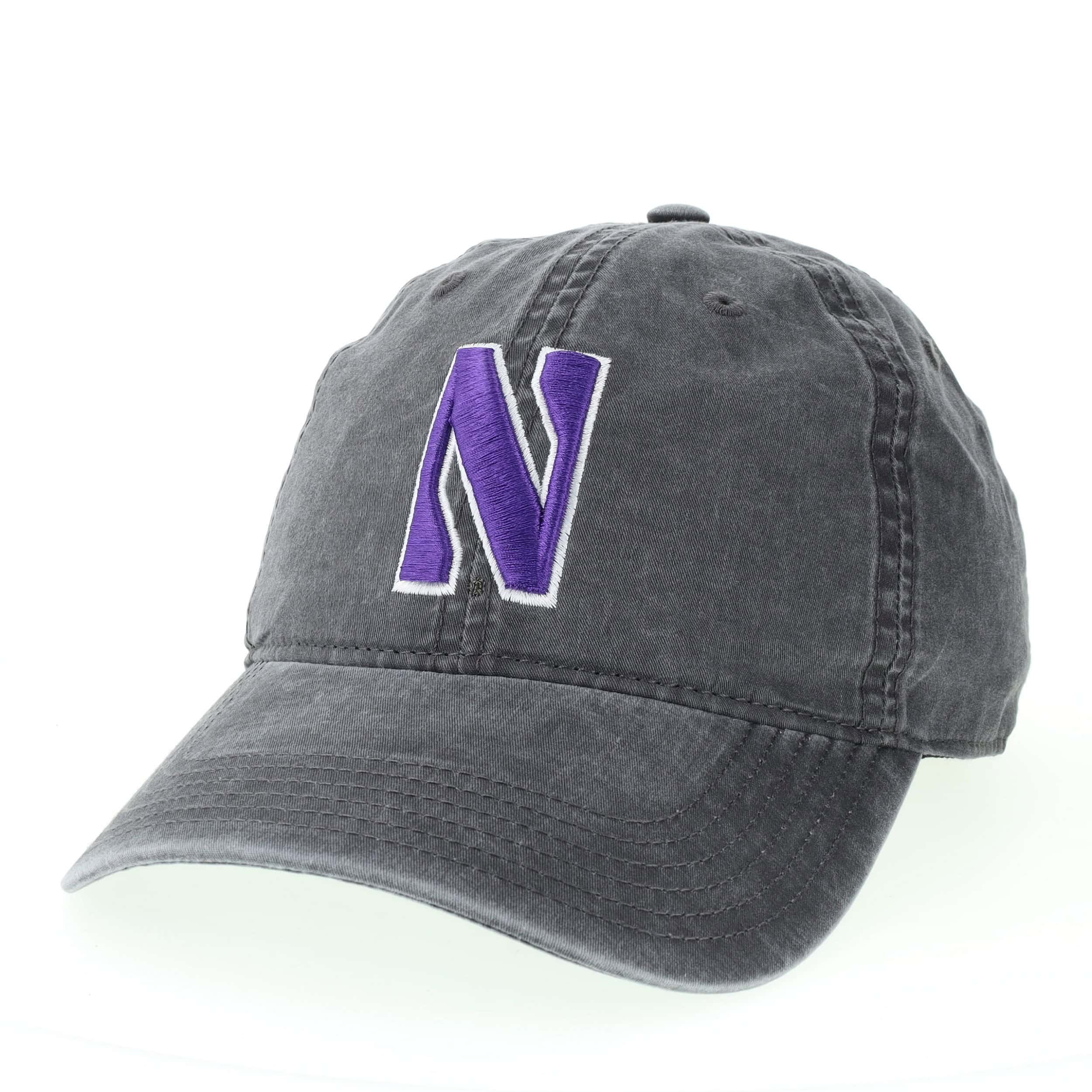Northwestern University Wildcats Super Light Weight Legacy Unconstructed Adjustable Vintage Washed Cinder Charcoal Terra Twill Hat with Stylized N Design