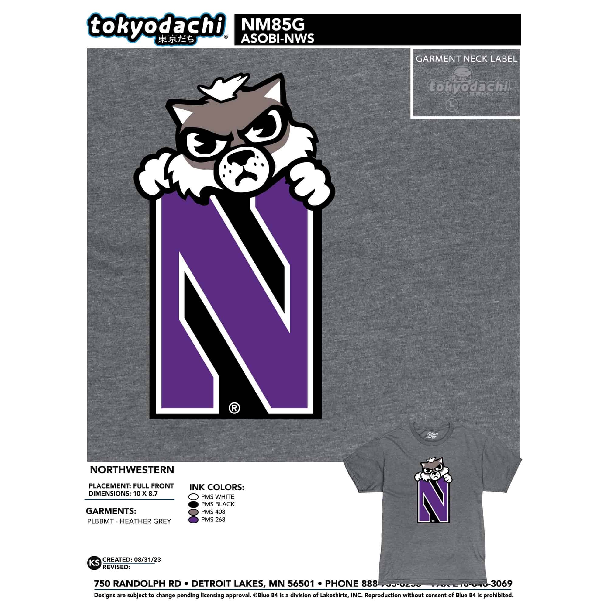Northwestern University Wildcats Tokyodachi Asobi Design Heather Gray Bi-blend Tee Shirt