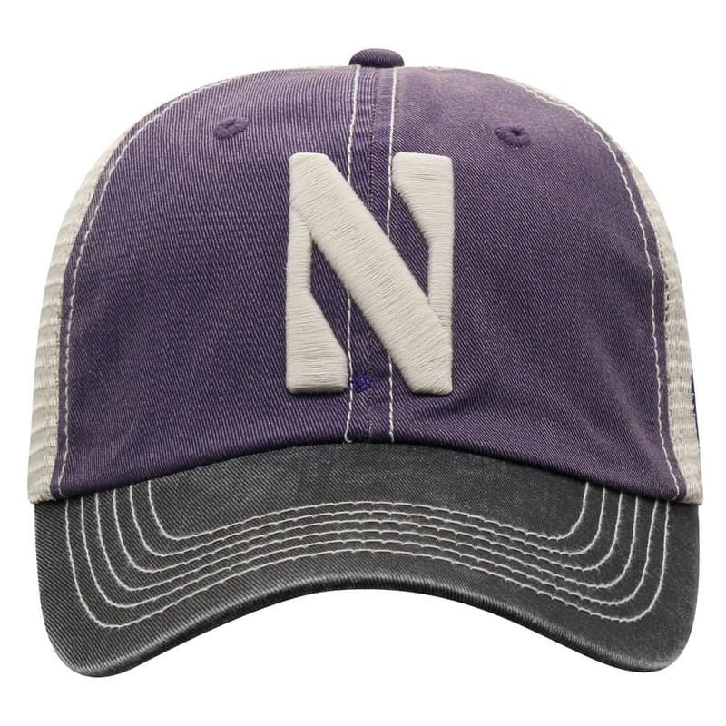 Northwestern University Wildcats Top Of The World Adjustable Snapback Purple/Cream Trucker Mesh Hat with Stylized N Design & Black Visor