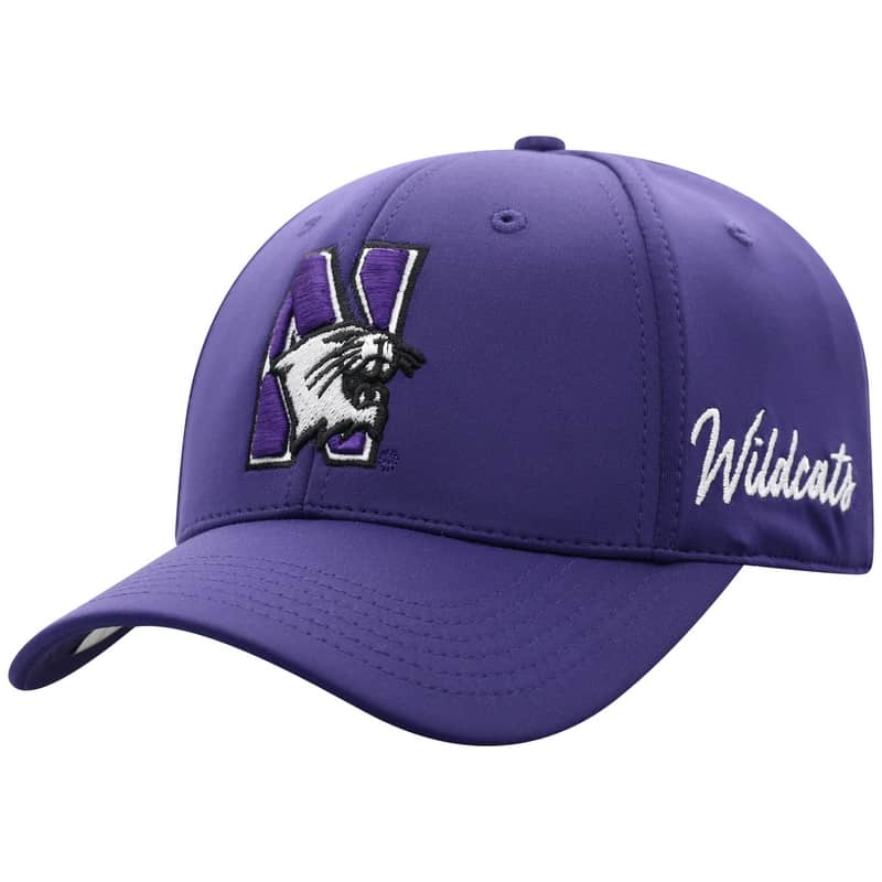 Northwestern University Wildcats Top Of The World Constructed Onefit Purple Performance Hat with N-Cat Design quantity