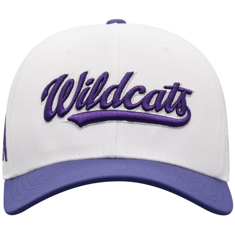 Northwestern University Wildcats Top Of The World Constructed Onefit Two Tone White/Purple Hat with Script Wildcats Design quantity