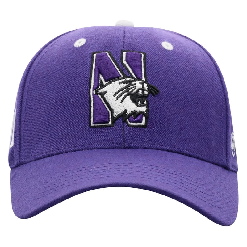 Northwestern University Wildcats Top Of The World Constructed Purple Velcroback Hat with The N-Cat Design quantity