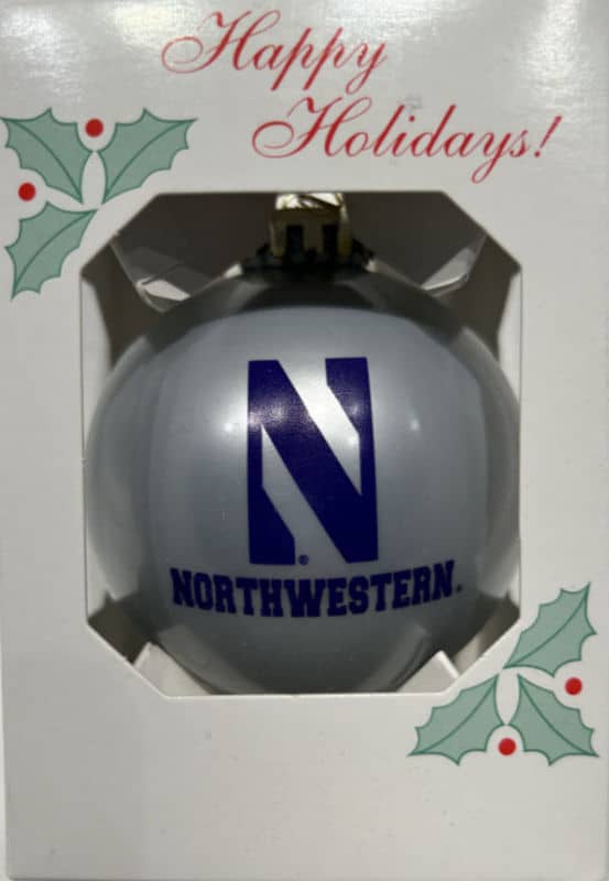 Northwestern University Wildcats Traditional Shatterproof Silver-Grey Bulb Ornament with N-Cat Design 3 1/4″